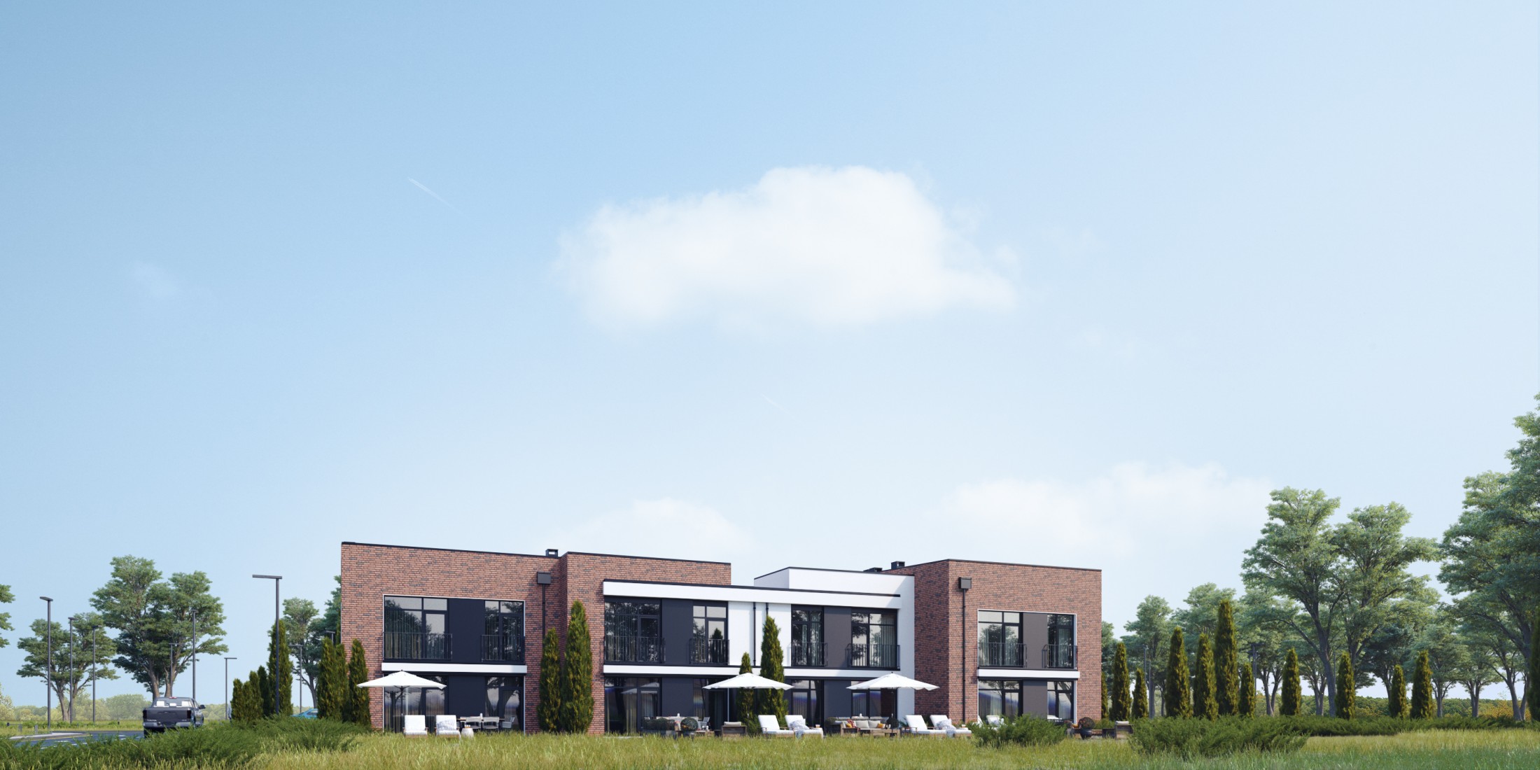 На смену белым фасадам из HPL-панелей в этом типе застройки пришли высококачественные имитации натуральных материалов. Будет прекрасно, если простые формы этого дома в жилом комплексе "Зелёная гавань" будут подчёркнуты восхитительной фактурой и благородными архитектурными цветами бельгийских клинкеров.