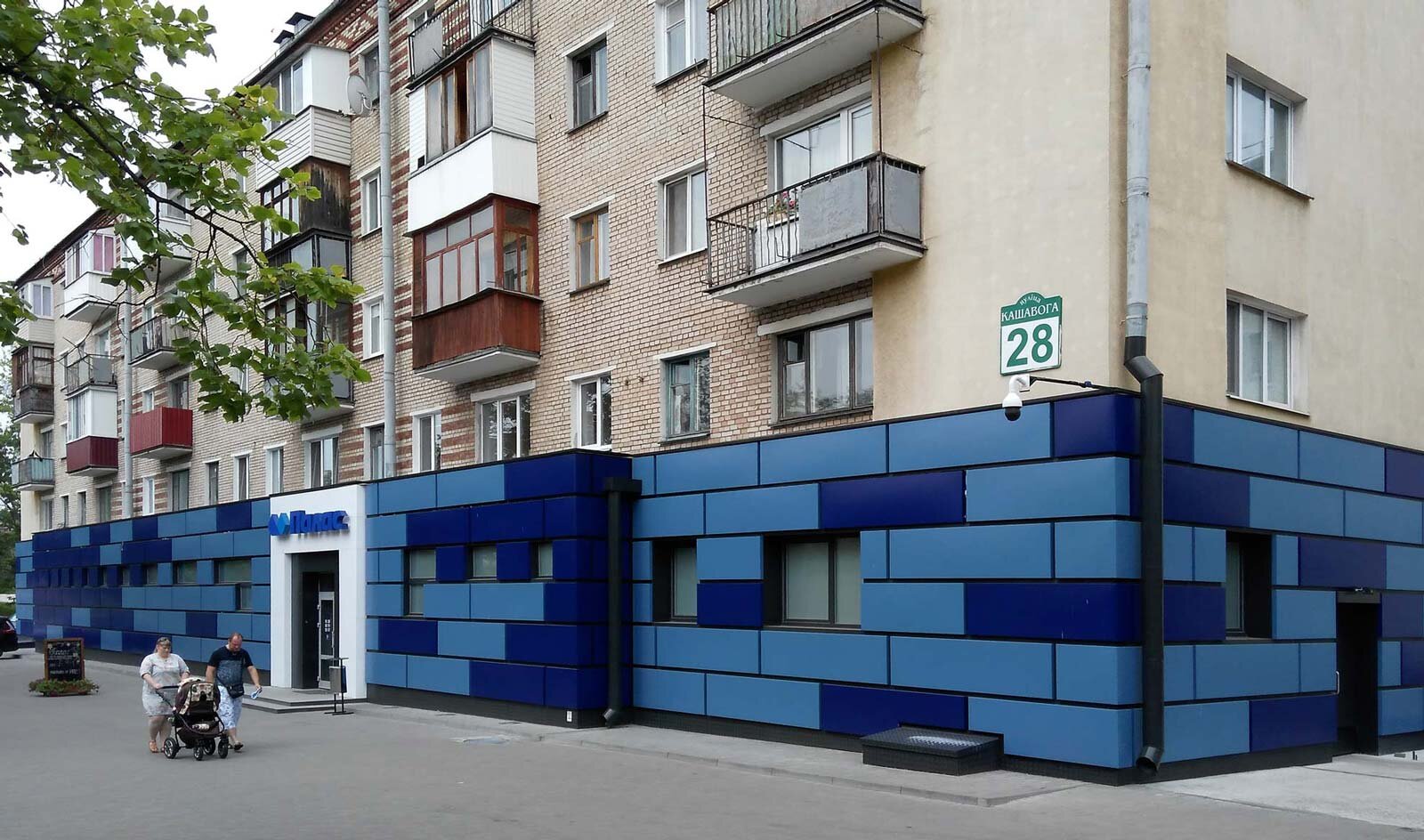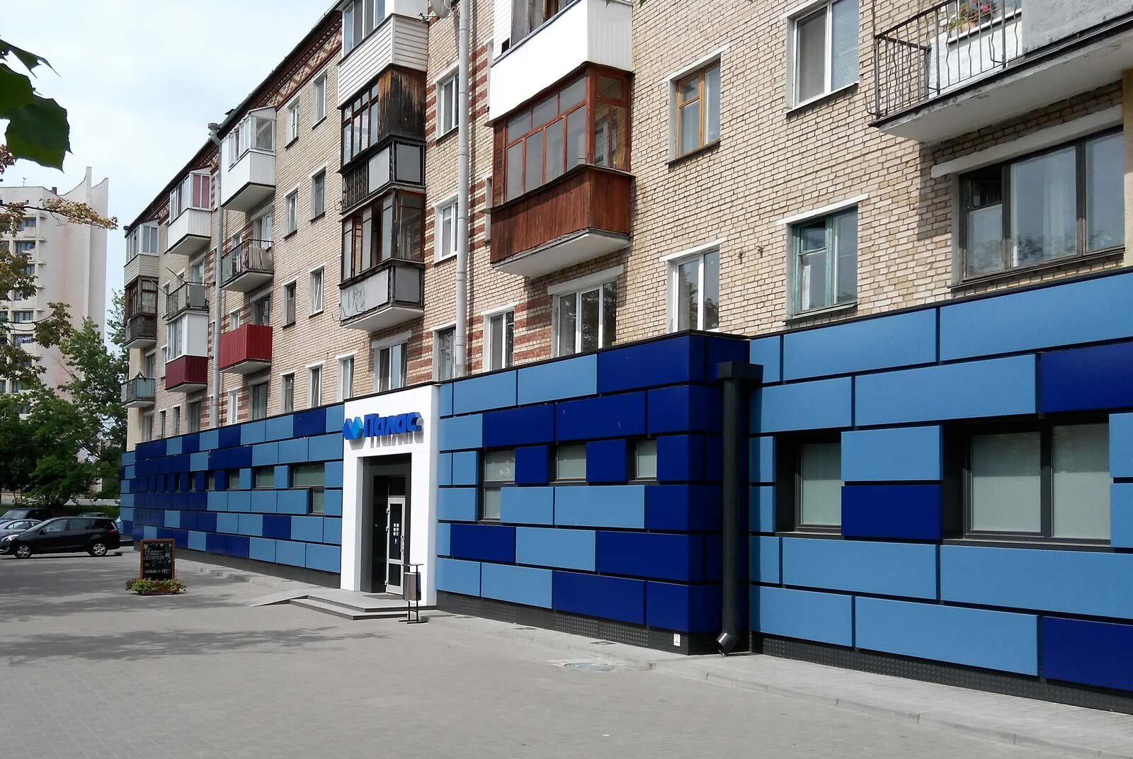Мастерская "Тельцов и партнёры" разрабатывала несколько объектов сети "Палас" и "Материк". Все объекты выполнены в едином стиле, разработанным специально для клиента и утвержденным для дальнешйнего использования. К примеру, схожий по стилистике объект (но гораздо сложнее и прогрессивнее, с более сложными техническими и инженерными решениями) - строительный гипермаркет "Материк" в городе Гродно. Мы считаем, что все сетевые объекты должны иметь единый узнаваемый корпоративный стиль.