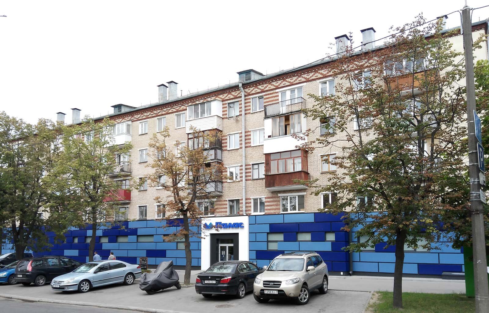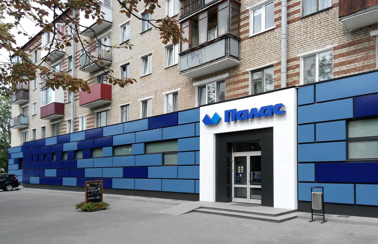 Мастерская "Тельцов и партнёры" разрабатывала несколько объектов сети "Палас" и "Материк". Все объекты выполнены в едином стиле, разработанным специально для клиента и утвержденным для дальнешйнего использования. К примеру, схожий по стилистике объект (но гораздо сложнее и прогрессивнее, с более сложными техническими и инженерными решениями) - строительный гипермаркет "Материк" в городе Гродно. Мы считаем, что все сетевые объекты должны иметь единый узнаваемый корпоративный стиль.