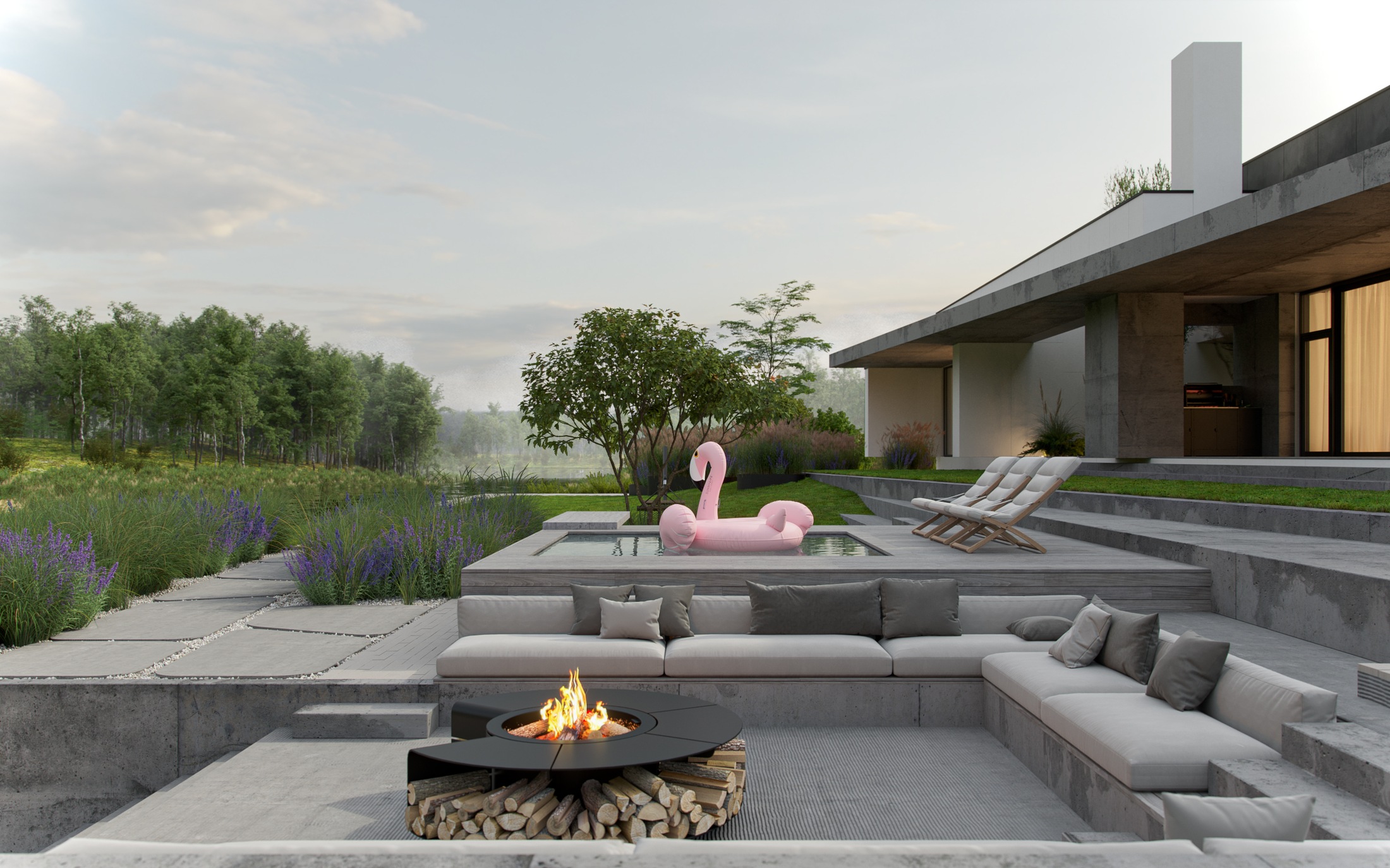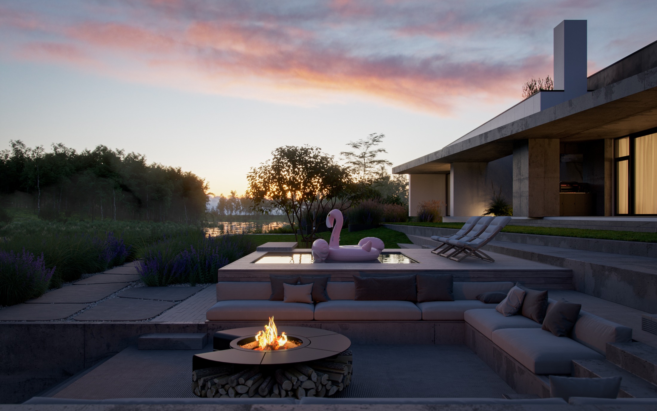 В доме спроектированы хозяйские и детские спальни с видом на реку, гостиная и кухня с видом на реку, летняя гостиная с видом на реку, СПА с видом на реку, терраса с видом на реку - все, собственно, с видом на реку. Имея под боком реку, просто грех этим не воспользоваться, мы считаем.