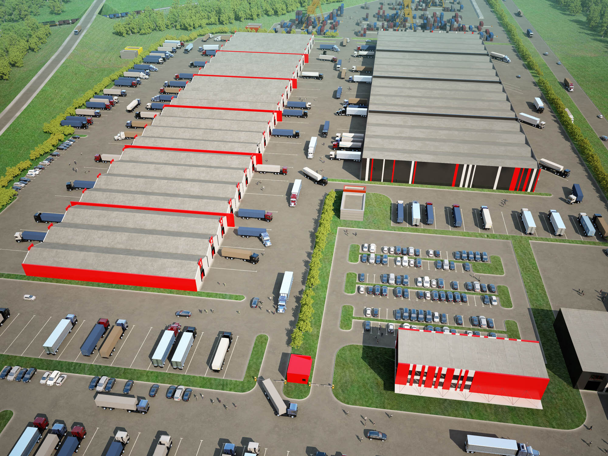 Производственные и складские территории в первую очередь формируются исходя из функциональных и логистических особенностей. Без учета этих особенностей невозможно сформировать действующий комплекс с большой площадью. Нам удалось запроектировать 17 независимых складских модулей, которыми могут управлять разные владельцы и арендаторы. Специалисты по генеральному плану и транспорту отлично справились с логистикой, сделав комплекс удобным и простым даже для единовременного использования всеми владельцами.
