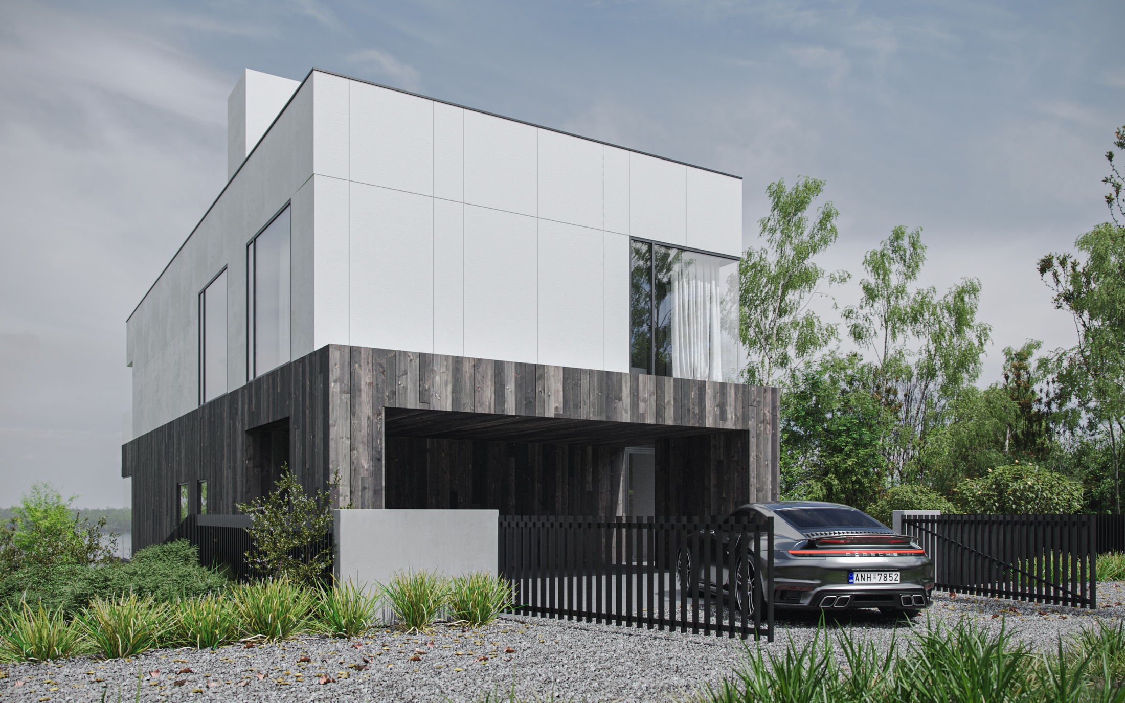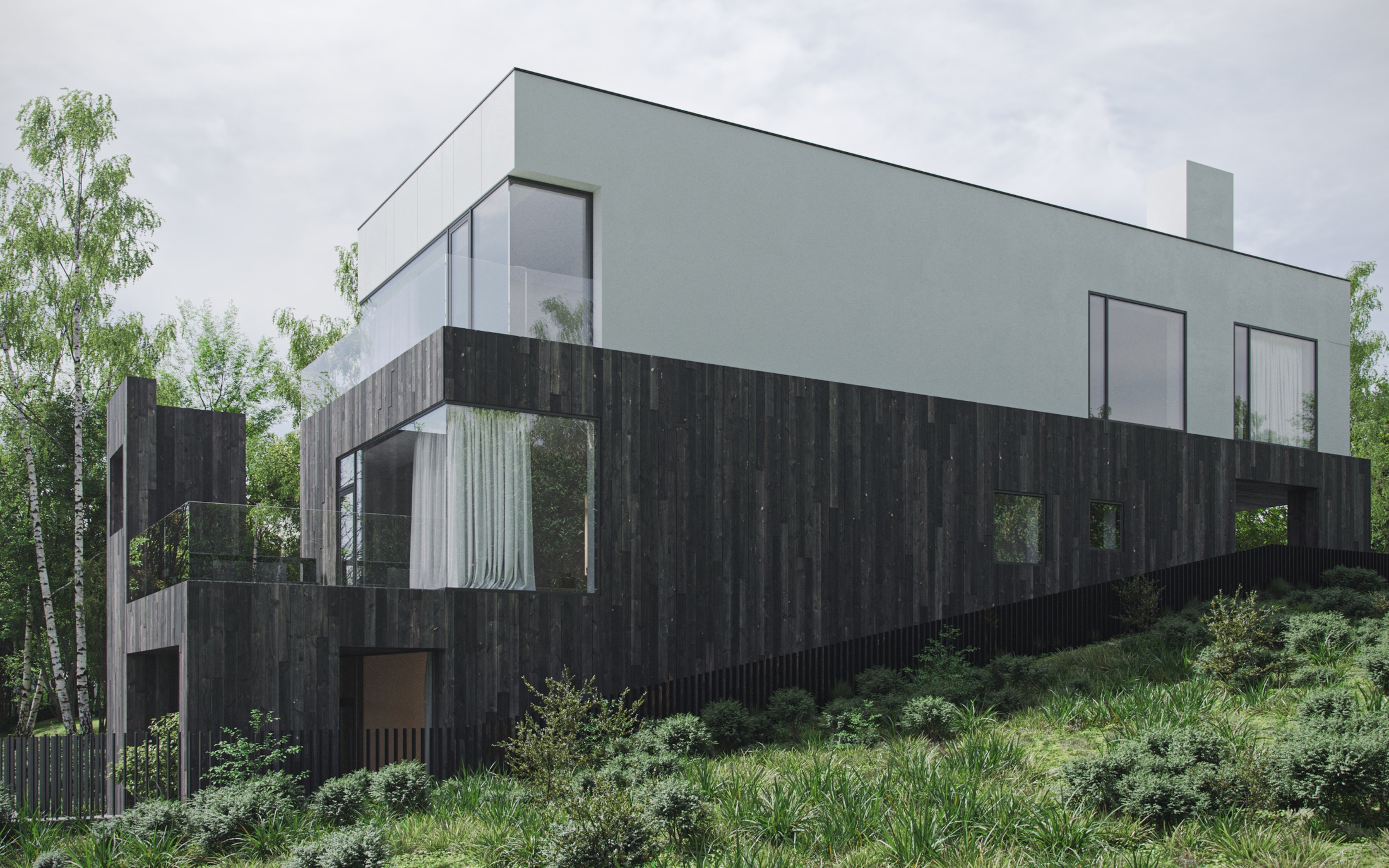 Самым интересным в этом доме станет его отделка - мы используем настоящие доски с аутентичных Браславских сараев в сочетании с крупноформатным белым керамогранитом, чтобы, скажем так, показать связь времени и места строительства, сохранив некую географическую семантику и отсылки к сооружениям, стоявшим неподалеку ранее.