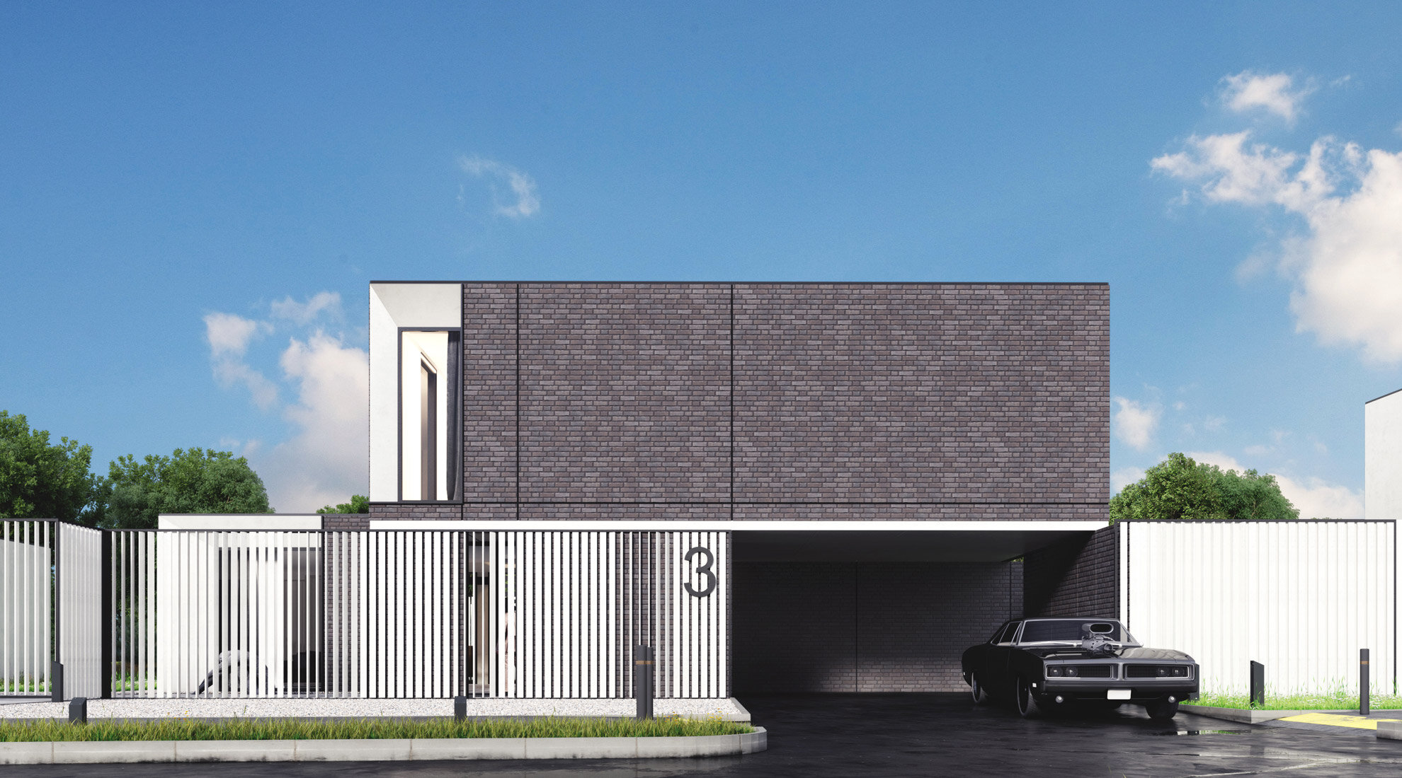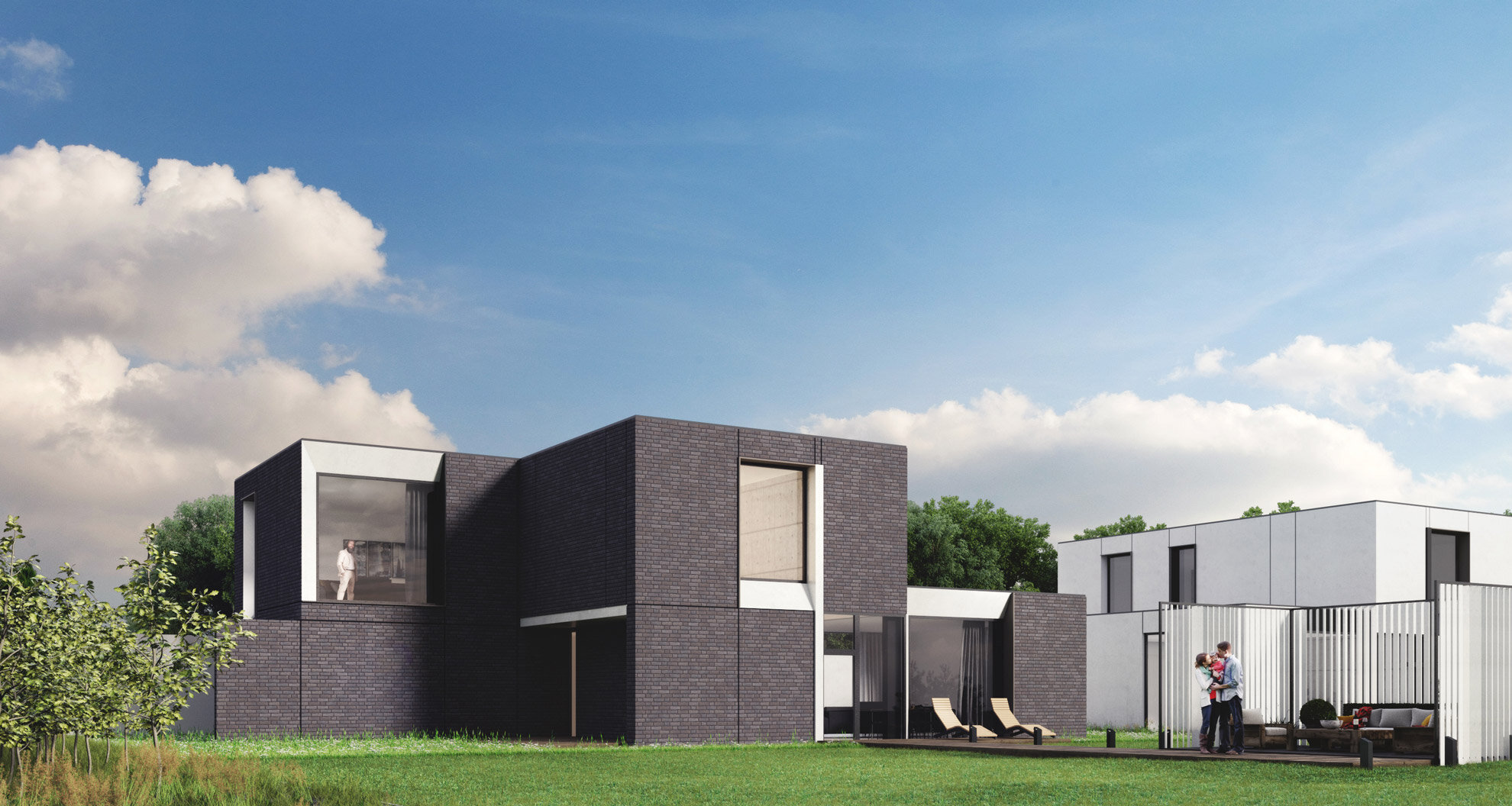 На смену белым фасадам из HPL-панелей (тут можно посмотреть полностью белый вариант отделки фасадов представленного проекта) в этом варианте частного жилого дома пришёл клинкер. Более традиционный, более "теплый", более родной материал для славянина. Будет прекрасно, если простые формы этого дома в жилом комплексе "Зелёная гавань" будут подчёркнуты восхитительной фактурой и благородными архитектурными цветами бельгийских клинкеров.