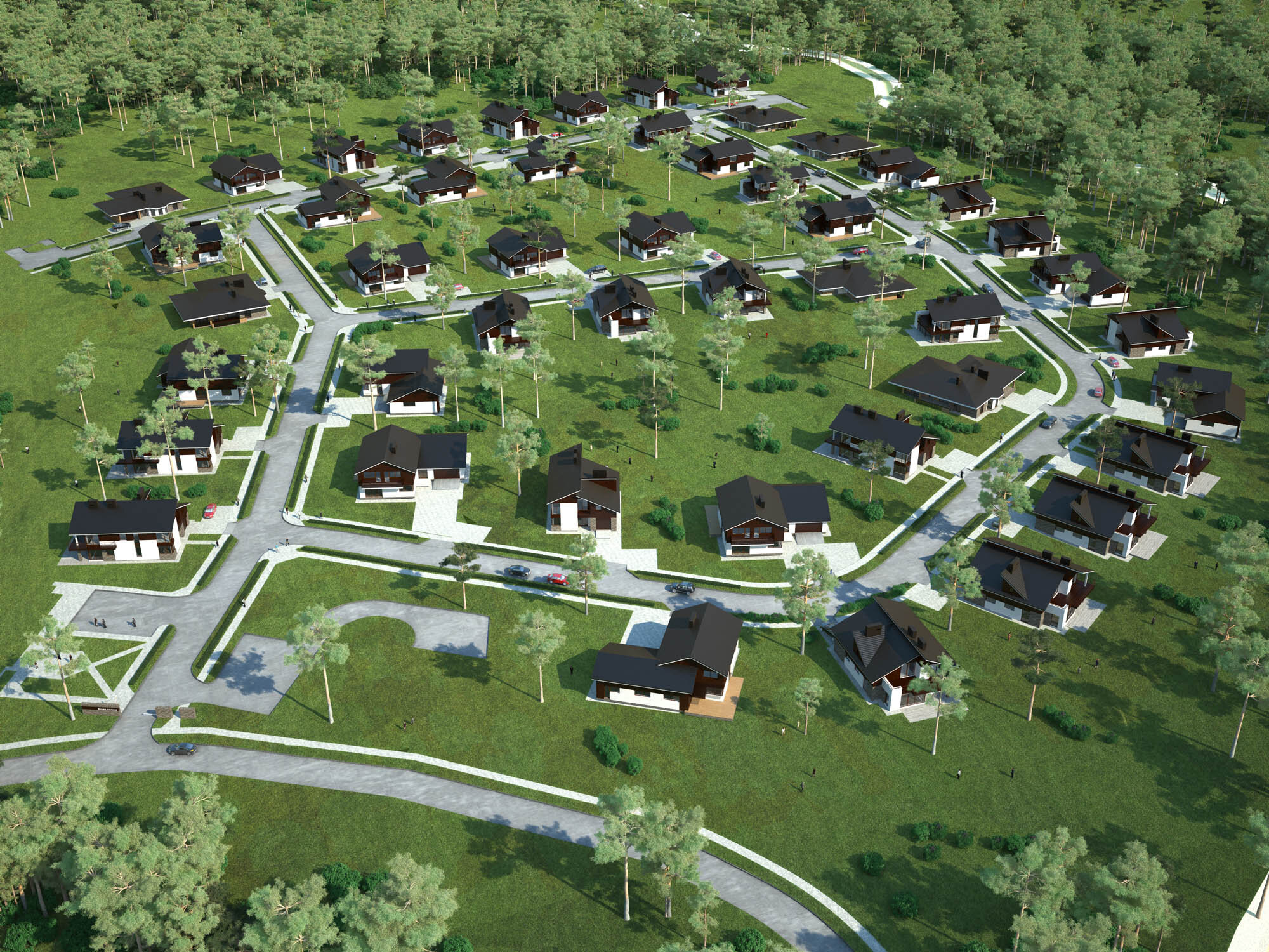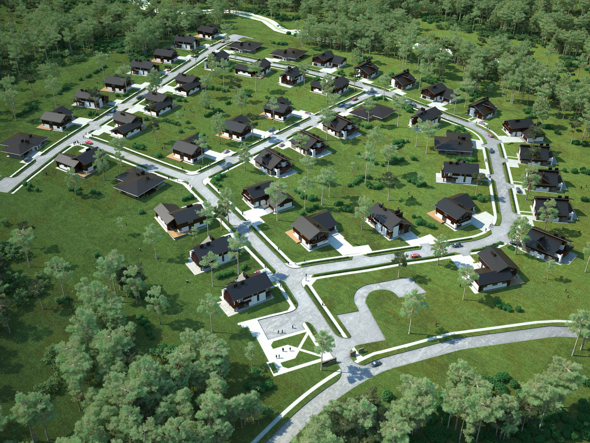 Нашей задачей в проектировании поселка было размещение и создание нескольких типов жилых домов в рамках утвержденного генерального плана. Нам удалось сохранить максаимум зелени, обеспечив жильцам естественную природную среду за окном.