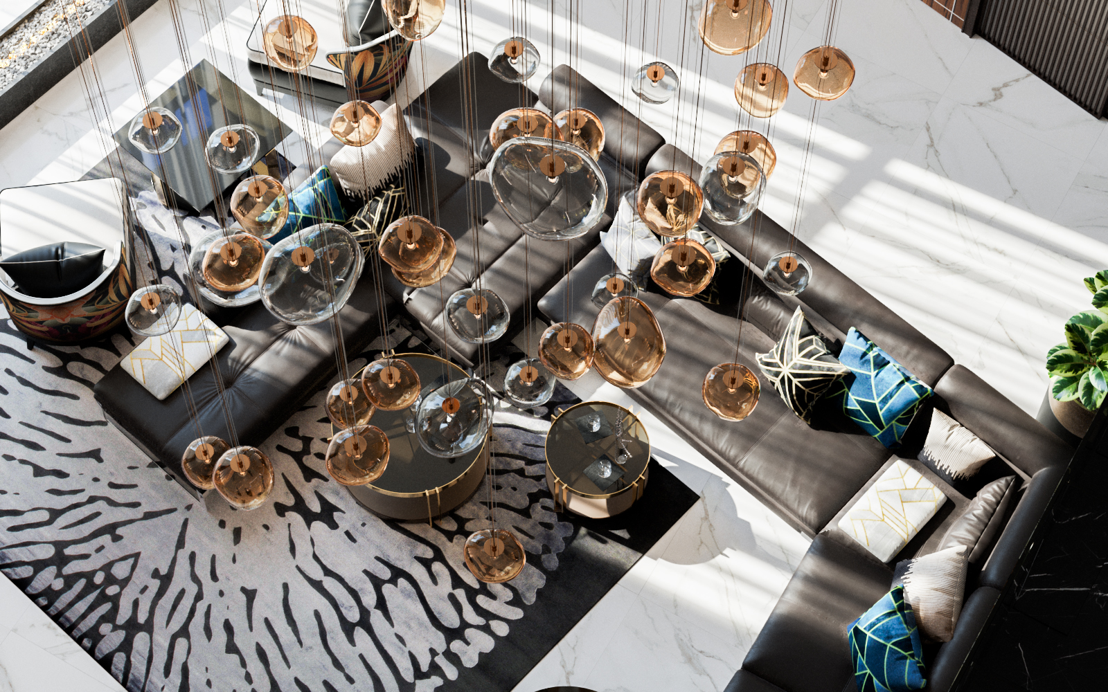 Здесь вашему вниманию мы представим общие пространства интерьера с водопадом и лифтом (да, в частных домах иногда необходимы лифты) и СПА.