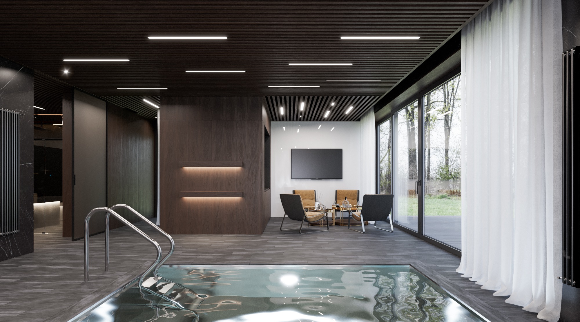 - Интерьер частного дома товарища П. - общие пространства и СПА