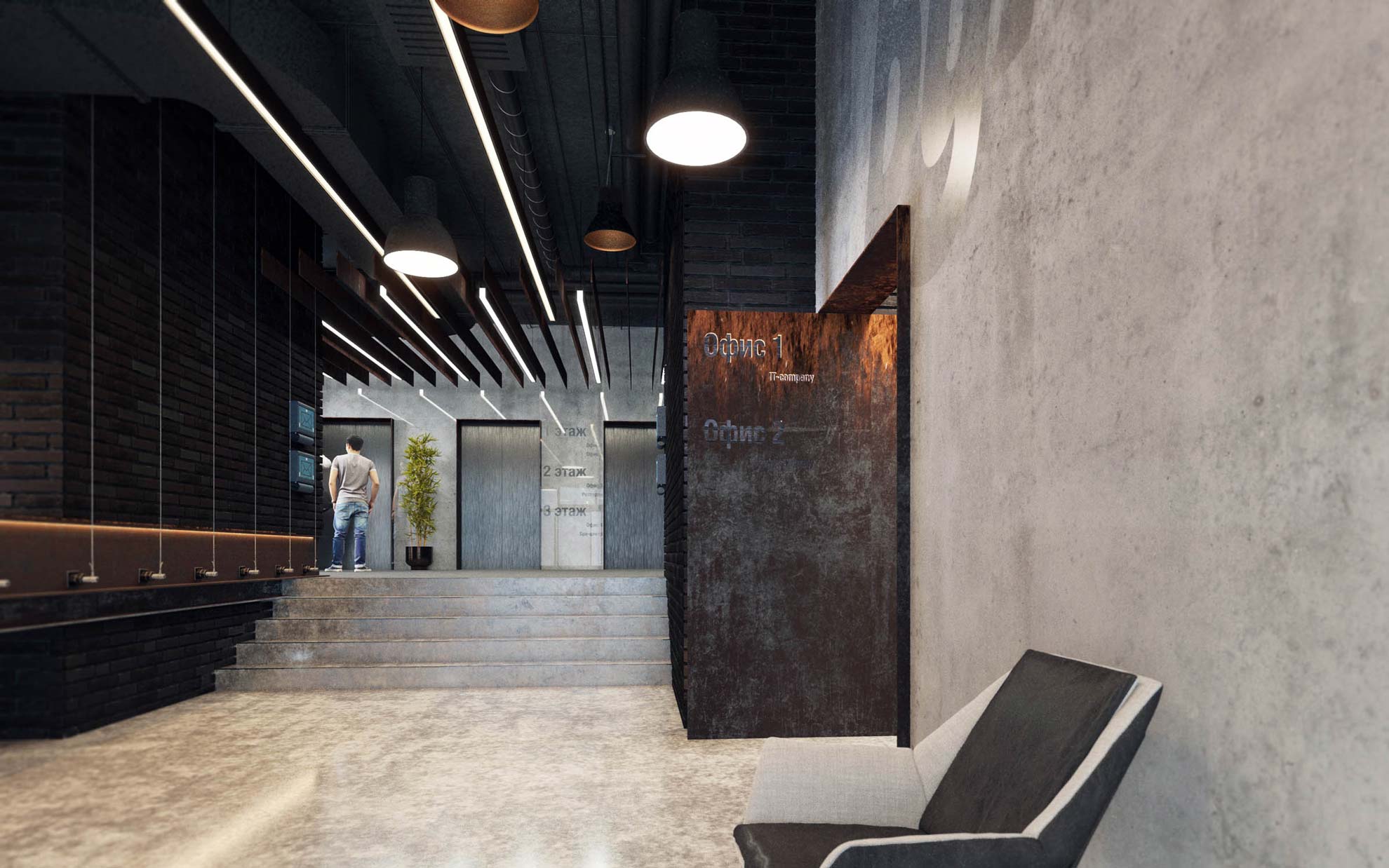 Крупная отечественная компания "Бульбашъ" выразила заинтересованность в разработке дизайн-концепции холла для их офисного блока в комплексе "Riviera plaza" в Минске и, разумеется, наша дизайн-студия не могла упустить эту возможность. Быстро прикинув, что закатать всё в золото в два слоя и продать это как свежую идею не будет выходом, мы предложили свой вариант дизайна, опирающийся на основные принципы формирования интерьеров в стиле "лофт" прошлого века. Человек, потрудившийся проанализировать особенности формирования этого стиля в дизайне и его исторические предпосылки, найдет характерные элементы в нашей концепции без труда. Тем, кому не хочется тратить на это время, мы со спокойной душой сообщим, что это действительно интерьер в стиле "лофт".
